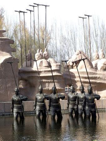 通過神明橋就來到了“霍去病西征大型群雕”。可用氣壯威武來形容這組雕塑。